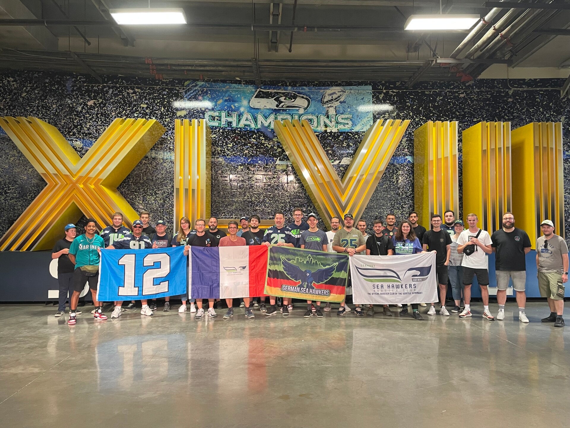 En plus de soutenir les Seahawks au Lumen Field de Seattle aussi souvent que possible, ce qui n'est pas toujours facile en raison de la distance, nous essayons de représenter les Seahawks lors d'autant d'événements NFL que possible en Europe, même lorsque les Seahawks ne jouent pas.